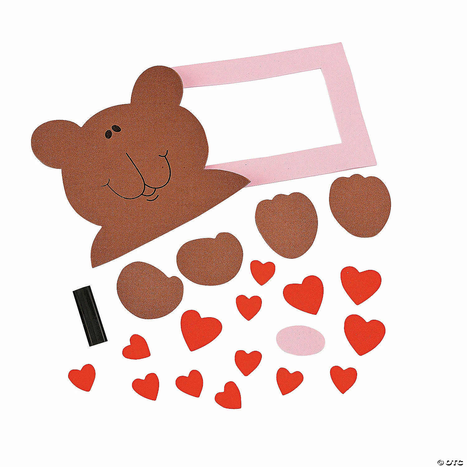 Bear Picture Frame Magnet Craft Kit. Frame your sweetie in a fun foam frame! 6 1/2″ x 8″; holds a 4 1/4″ x 2 1/2″ photo. All craft kit pieces are pre-packaged for individual use. Magnets are packaged separately. Do not discard. Kits include instructions and extra pieces. We recommend using foam glue, sold separately online. ยฉ OTCBear Picture Frame Magnet Craft Kit Instructions