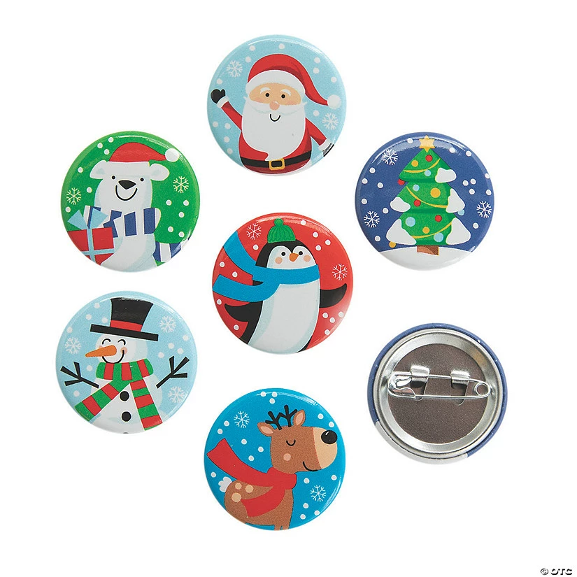 Pin the holiday spirit right on your Christmas sweater with these oh-so-cute Christmas buttons! These small metal buttons feature Christmas and winter images, and they make super jolly Christmas party favors and giveaways. Use them as stocking stuffers, prizes at a big Christmas celebration or as seasonal classroom incentives. Metal. (4 dozen per unit) 1″ diam. © OTC