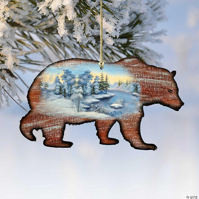 Promo โจ Designocracy Grizzly ๐ Christmas Wooden Ornaments Set of 2 Wildlife Holiday Decor ๐
