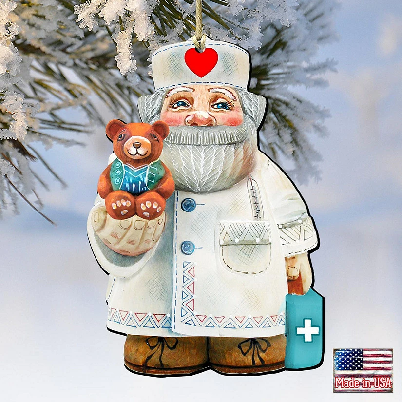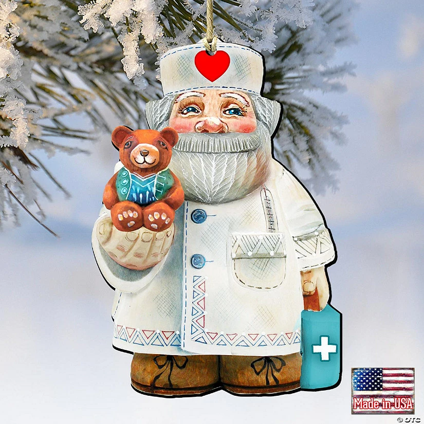 Brand new ๐ฅฐ Designocracy Teddy Bear Doctor Wooden Ornaments Set of 2 ๐ Christmas Santa Snowman Decor โ๏ธ
