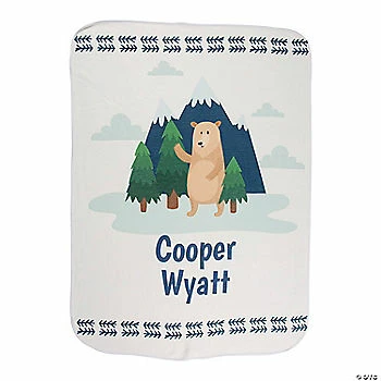This unique baby shower gift is sure to bring the โawโs! Add the new babyโs name or other message beneath the friendly bear and mountain design to make this blanket a keepsake baby will treasure forever. This baby blanket also makes a great present to welcome babies home from the hospital! Personalize this fleece blanket with 2 lines of text. Polyester fleece. 29″ x 39″ Imported. ยฉ OTC