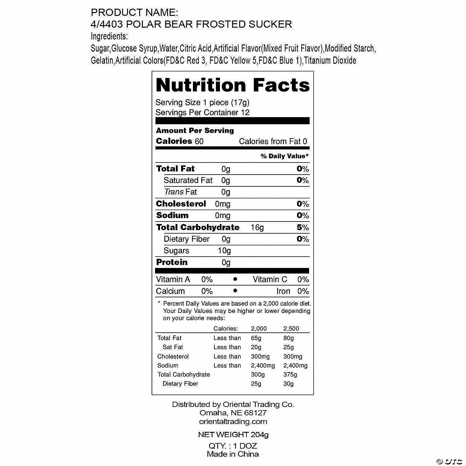 If the weather outside is frightful, unwrap this “cool” polar bear treat and enjoy it in front of a crackling fire. All bundled up, each mixed fruit flavored polar bear cheerfully greets everyone. Each 2″ sucker is on a 4″ plastic stick. Total weight, 7 oz. Fat-free. Candy is non-returnable. For more information, visit our “Return Policy” page located on our website. © OTC