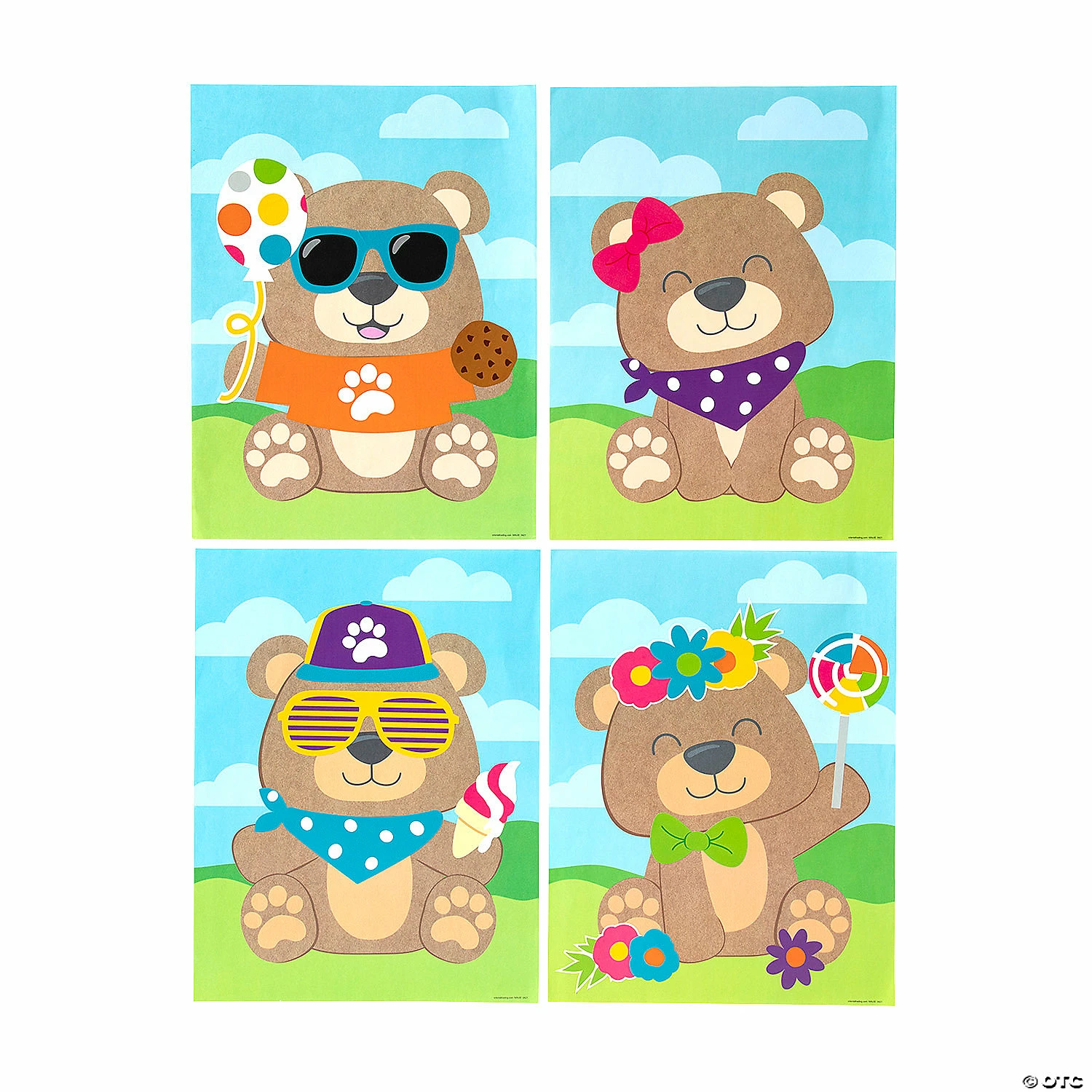 These sticker scenes are unbearably cute! Kids will have fun dressing up these little bears with accessories like patterned bandanas and cool shades. They won’t be stealing anybody’s picnic food because they have their own tasty treats! Great for bear-themed birthday parties and events or classroom activities. Includes 12 backgrounds and 12 repositionable sticker sheets. Paper. 8 1/2″ x 11″ © OTC